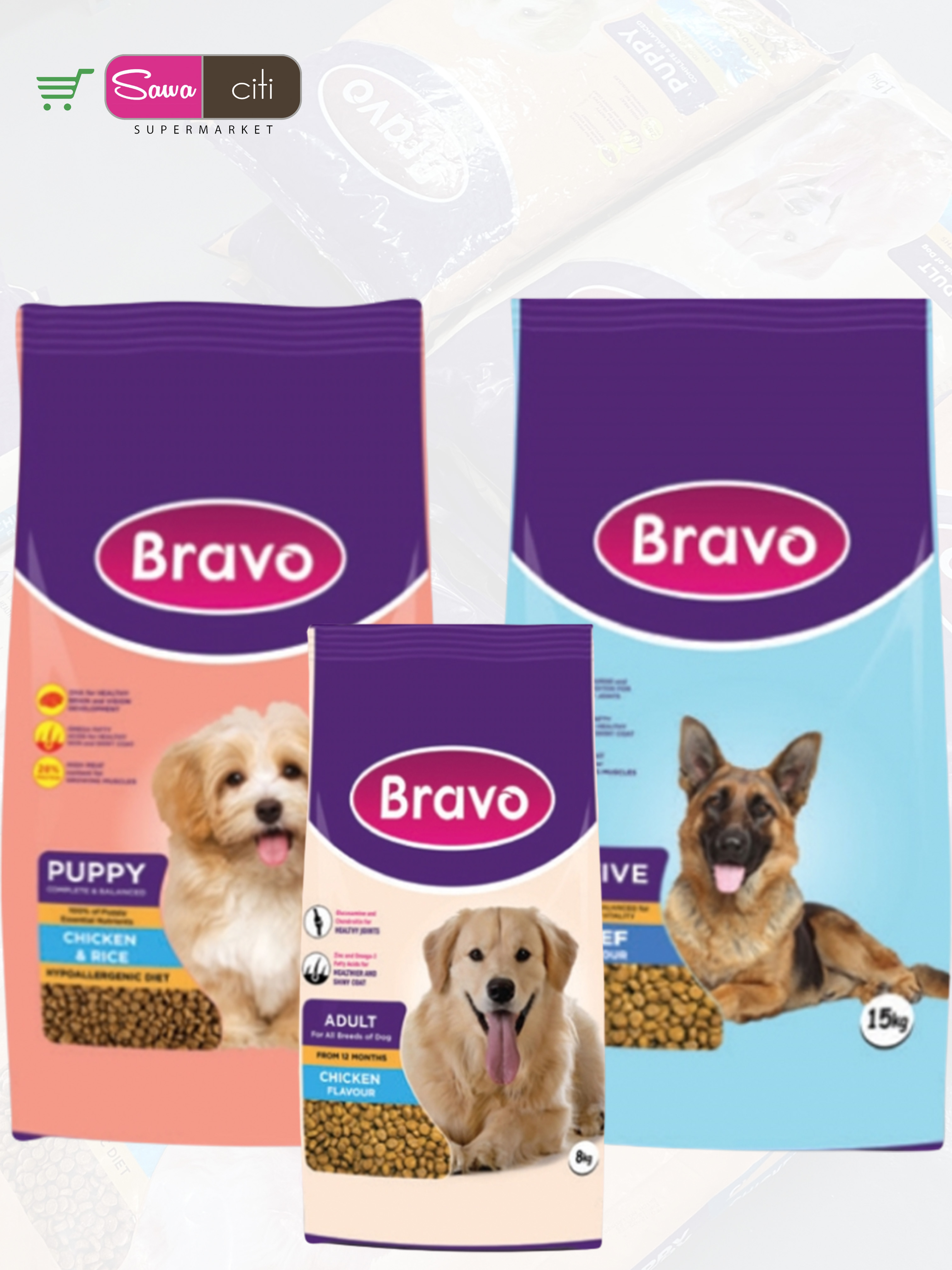 Bravo Active Dog Food is a high-quality beef flavoured dog food containing a balanced blend of essential nutrients functional proteins fatty acids vitamins and minerals to ensure. BRAVO DOG FOOD ADULT 15KGCHICKEN FLAVOUR KSh 3325. This is a high nutrition meal suitable for dogs aged 12 years and above.